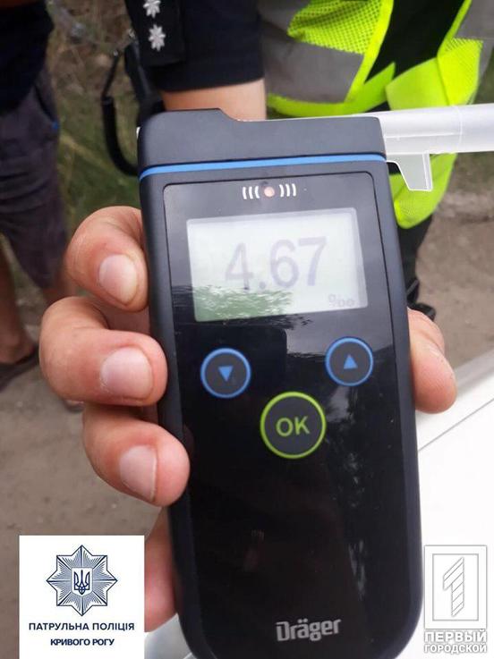 Криворожские патрульные быстро среагировали и остановили «гонщика». Им оказался 32-летний нетрезвый мужчина. Проведённый тест газоанализатора показал 4,67 промилле алкоголя в организме, это почти в девять раз больше допустимой нормы.