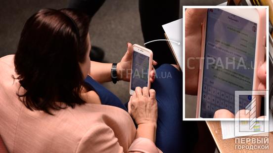 В сессионном зале народная избранница от 32-го округа Кривого Рога голосовала за снятие депутатской неприкосновенности и одновременно вела переписку с абонентом под именем «Любимый» в мессенджере «Телеграм».