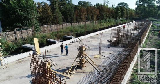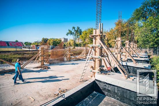 Строители возводят 29 колонн – их каркасы из арматуры ранее надёжно «увязали» в фундамент трибуны. Теперь «скелеты» стен и колонн заполняют бетоном. Самые крупные достигают 5,7 метров в высоту. После того, как бетон застынет, строители приступят к монтажу стального навеса. Место под трибунами отдадут под тренерские комнаты, раздевалки и уборные.