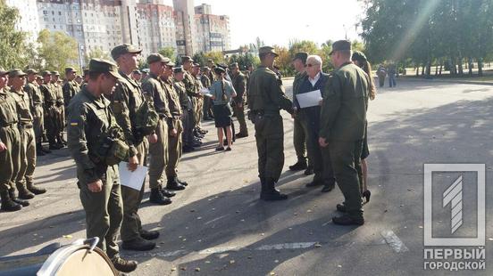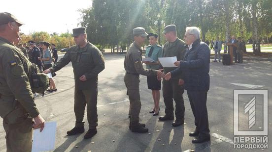 18 сентября возле здания криворожского горсовета нацгвардейцам воинской части 3011 вручили сертификаты об окончании курса подготовки. Это сделали по случаю первого дня, когда военнослужащие выходят на патрулирование улиц города. Документы получили около 160 гвардейцев.