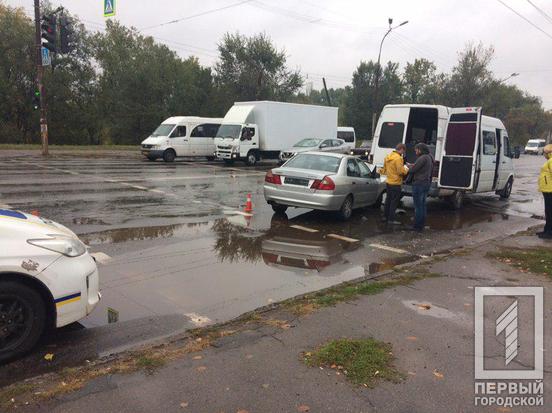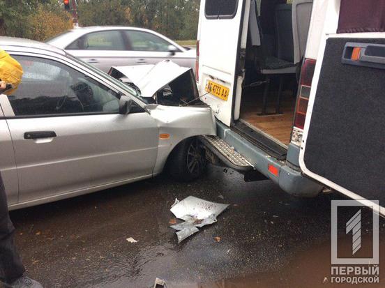 Авария в Кривом Роге: Mitsubishi въехал в маршрутку на остановке