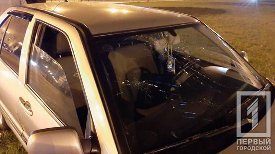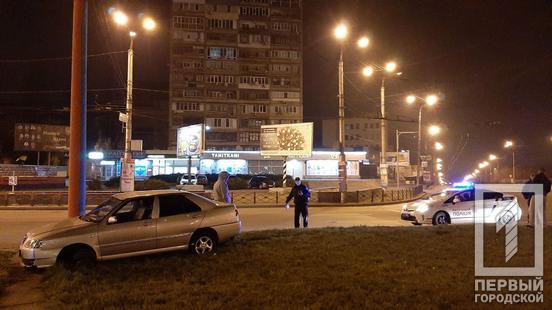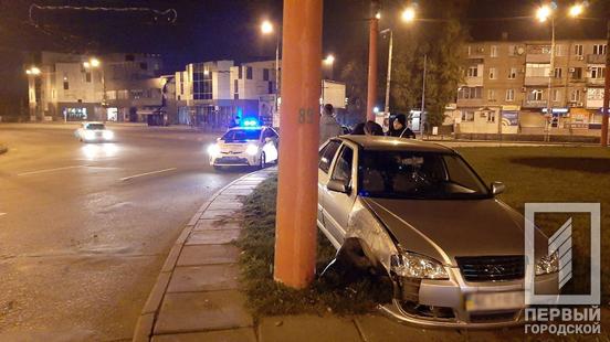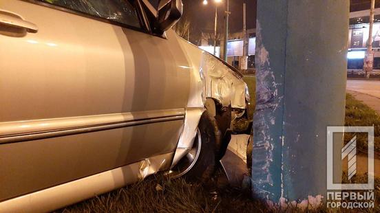 Автомобиль врезался в столб на кольце в центре Кривого Рога