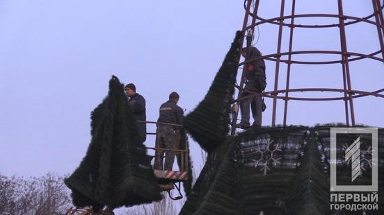 Каркас криворожской ёлки начали устанавливать ещё 27 ноября. Пока она выглядит не совсем нарядной. Но над ней трудится бригада монтажников. В Киеве также приступили к установке главного праздничного дерева страны.
