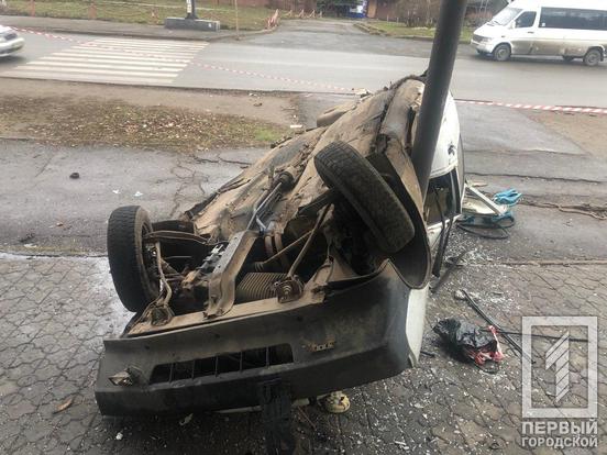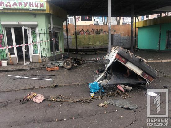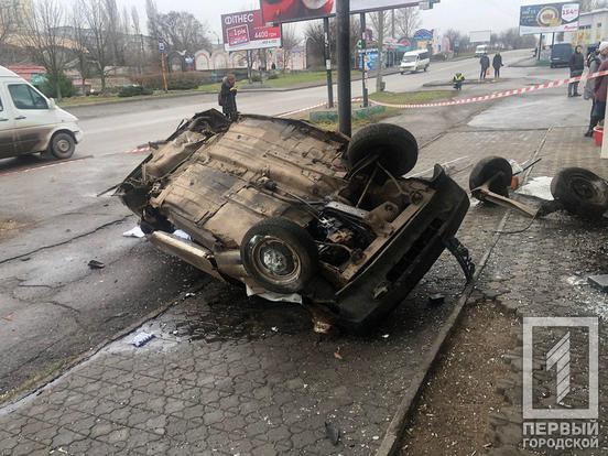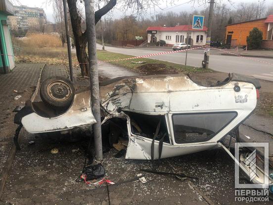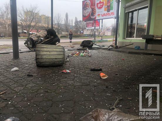 В Кривом Роге «Таврия» наехала на бордюр, перевернулась и влетела в киоск на остановке