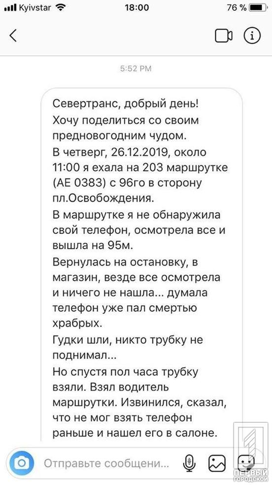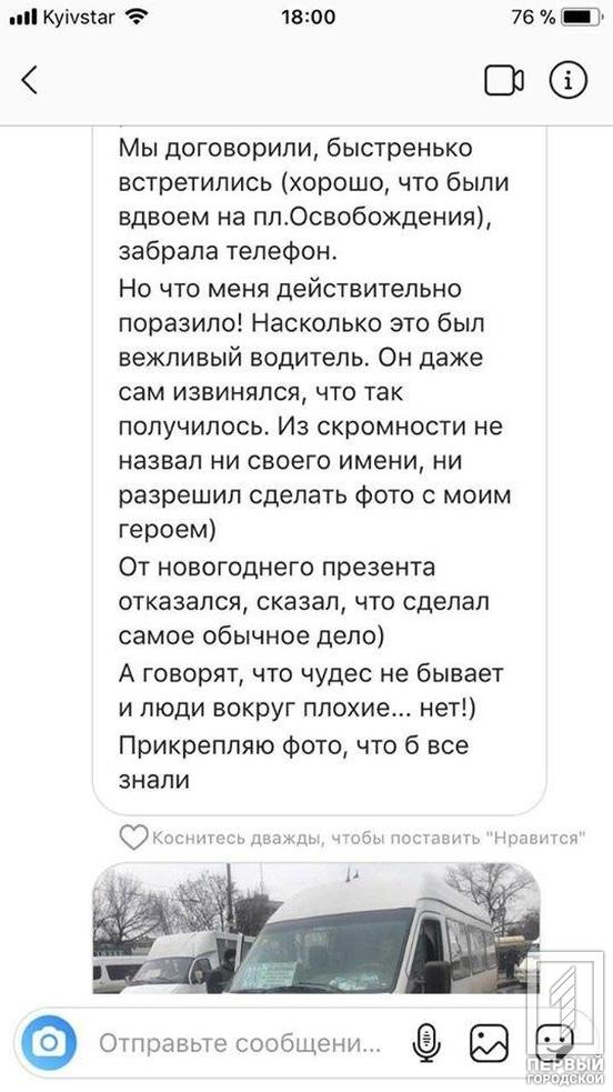 В Кривом Роге водитель маршрутки вернул женщине забытый в салоне телефон