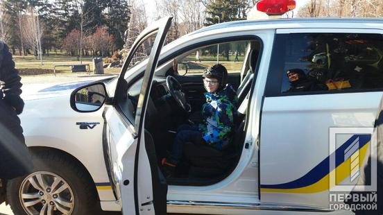 Также возле фотозон находился служебный автомобиль, на котором приехали копы. Детям разрешали сесть в него, осмотреться внутри и даже порулить.