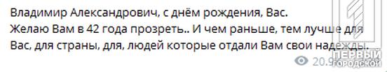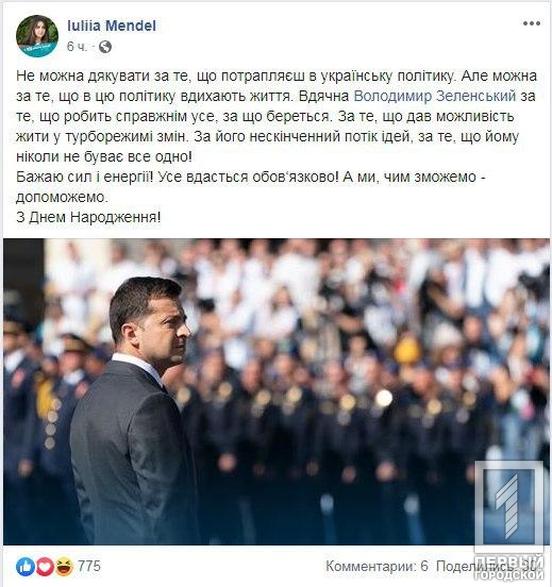 Также не отстаёт и пресс-секретарь Юлия Мендель, которая в своём поздравлении назвала Президента человеком, которому «не всё равно». Она пожелала ему сил, энергии и поблагодарила за нескончаемый поток идей.