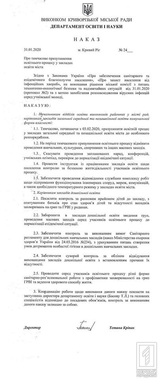 В Кривом Роге с 3 февраля закроют школы на двухнедельный карантин