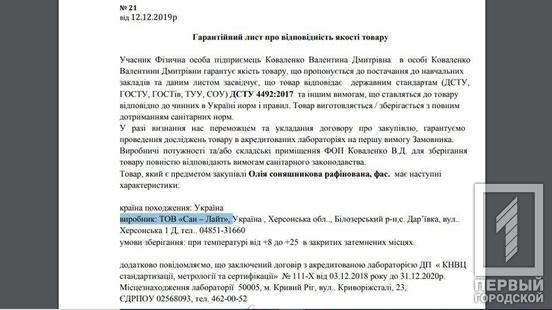 В школы и садики нескольких районов Кривого Рога закупили подсолнечное масло по завышенной цене
