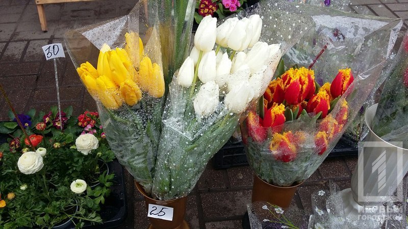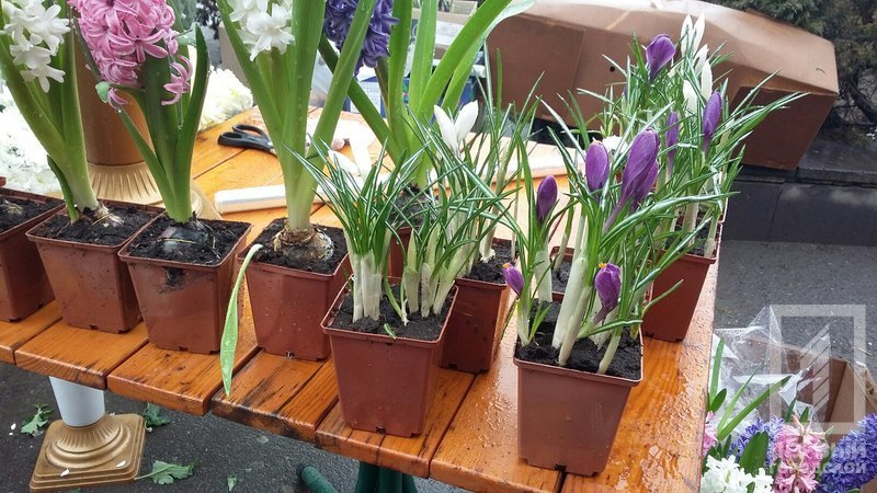 Самой большой популярностью пользуются тюльпаны – их цена колеблется от 35 до 40 гривен за букет из трёх цветков. Можно купить и один – за 20 гривен, всё зависит от сорта и размера. Интересная и неординарная примула стоит 25 гривен, крокус – 35. Дороже обойдётся гиацинт, он стоит полсотни гривен.