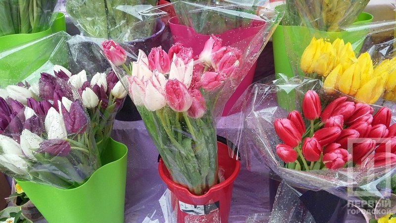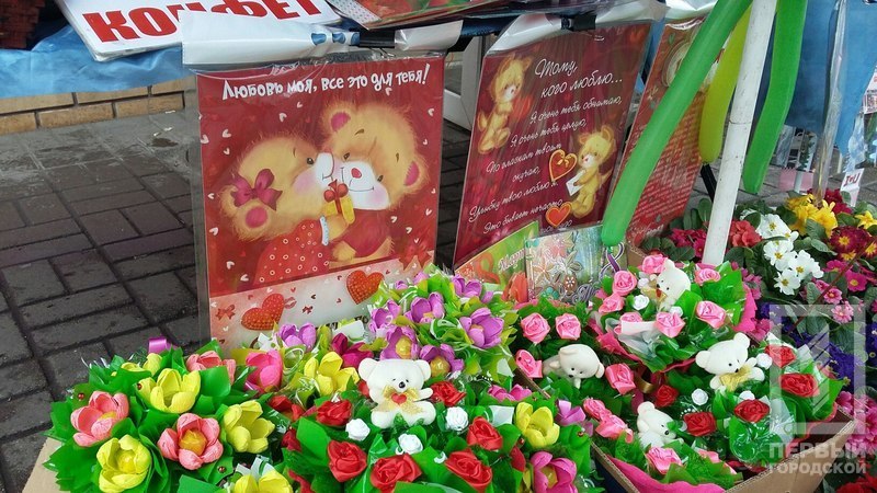 На рынках и в переходах Кривого Рога продавцы уже активно выставили товар, популярный в этот весенний праздник: цветы, открытки, мягкие игрушки.