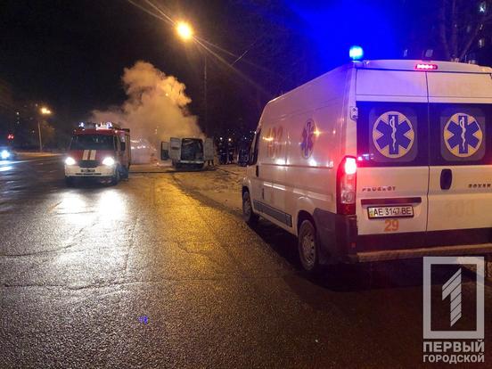 На оживлённой улице в Кривом Роге сгорел микроавтобус, никто не пострадал