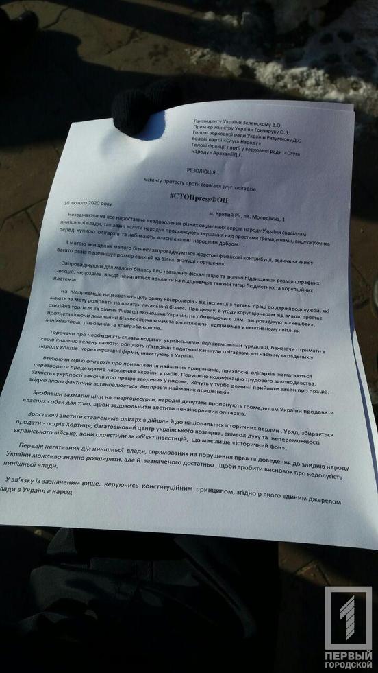 10 февраля под стенами здания исполкома Криворожского горсовета собрались митингующие. Они выступают за сохранение системы упрощённого налогообложения для малого бизнеса. Такие акции проходят ещё в тридцати городах Украины.