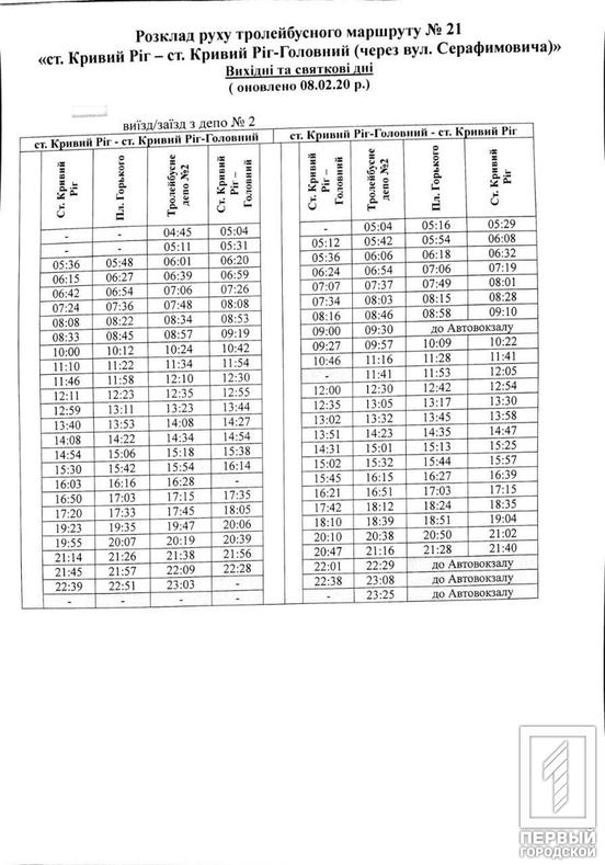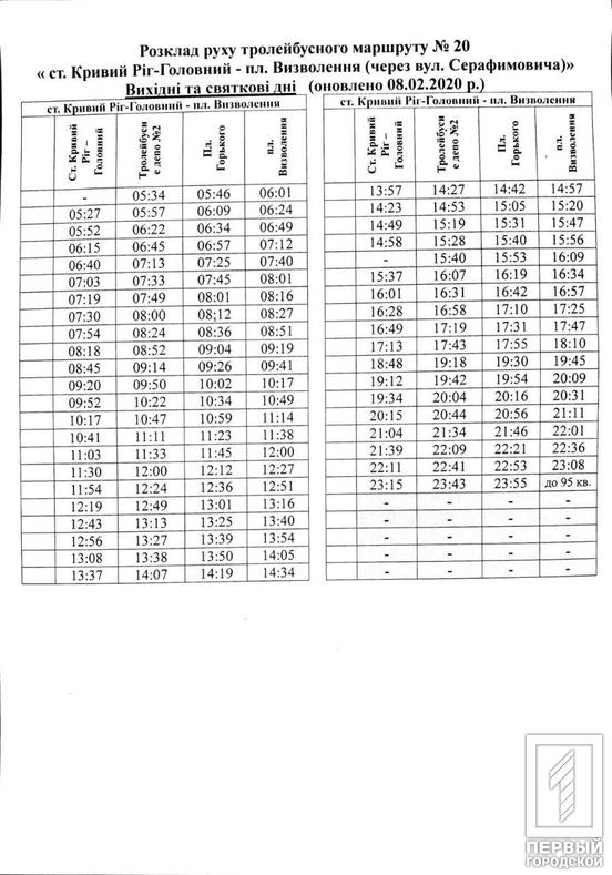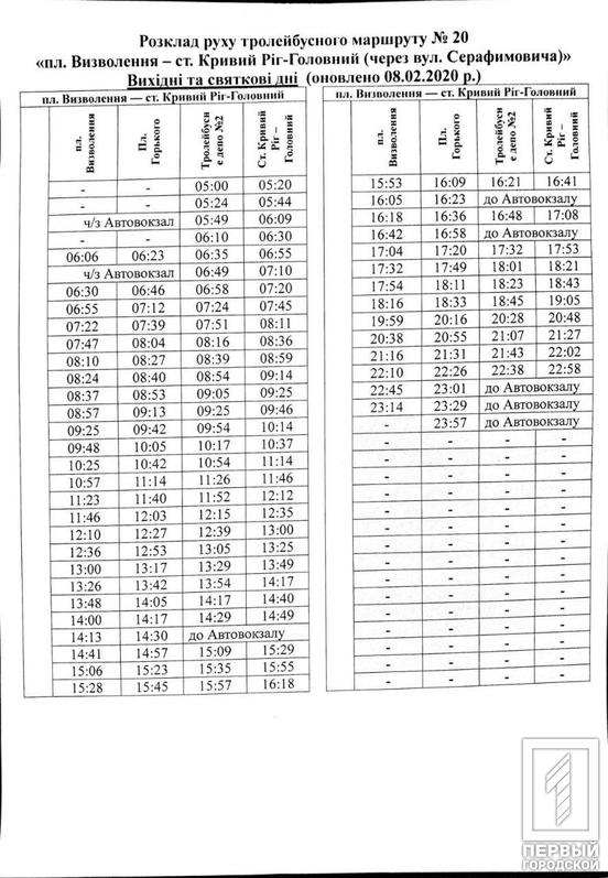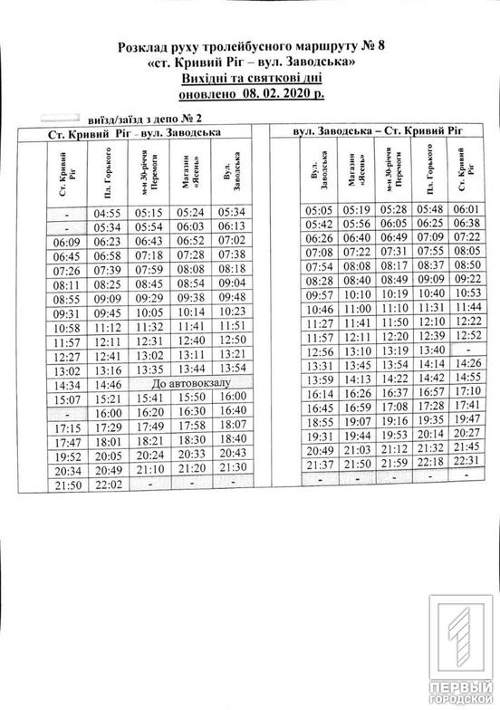 Расписание движения общественного транспорта претерпело некоторые изменения. Так, троллейбусы пяти маршрутов будут курсировать по новому графику в выходные и праздничные дни. Об этом сообщили на странице Отдела транспорта и связи исполкома Криворожского горсовета.