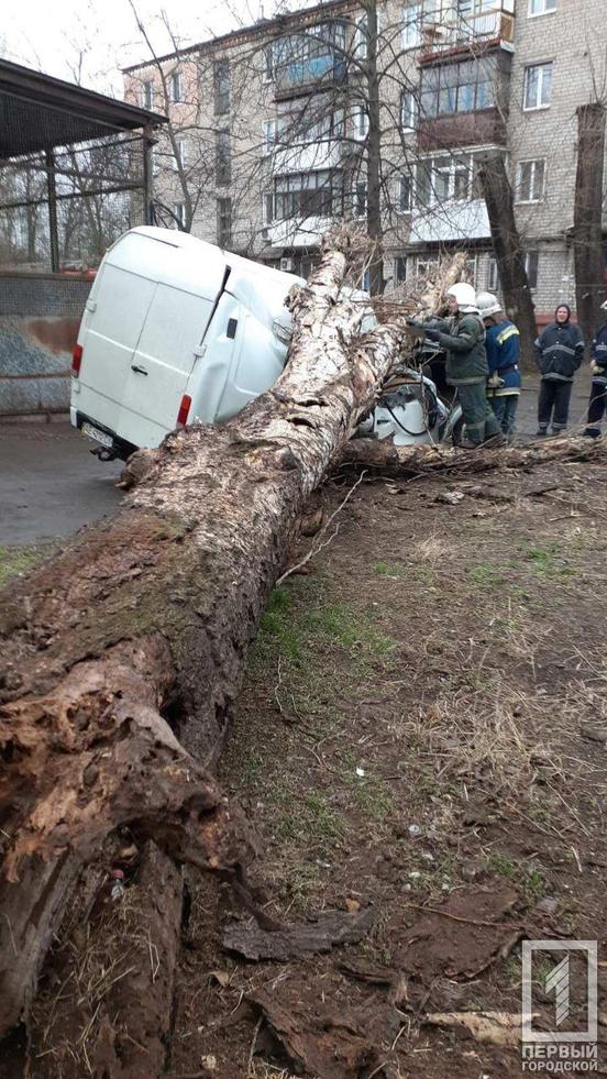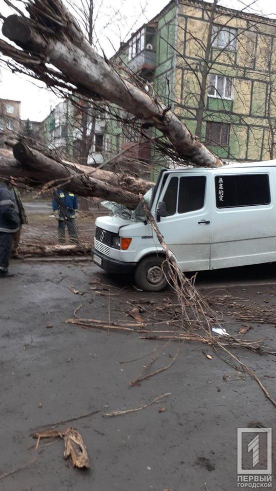 Из-за сильного ветра в Ингулецком районе дерево упало на микроавтобус. Отмечается, что в автомобиле в это время никого не было. Об этом информирует пресс-служба ГСЧС Кривого Рога.