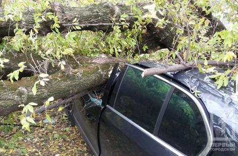 Из-за сильного ветра в Кривом Роге дерево обрушилось на автомобиль