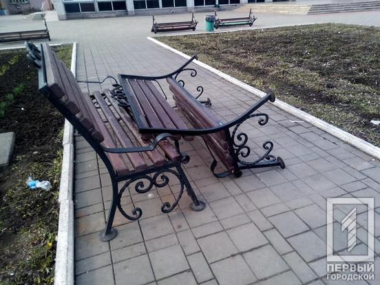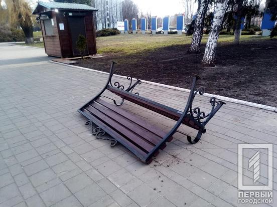 В Кривом Роге вандалы перевернули лавки в парке возле дворца культуры