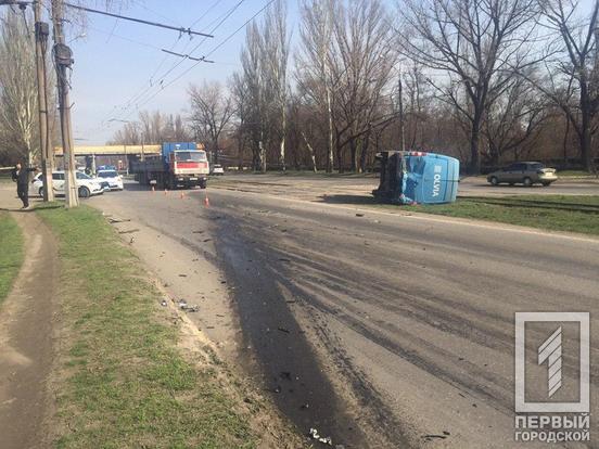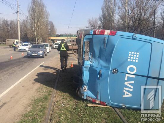 В Кривом Роге перевернулся микроавтобус, пострадал водитель