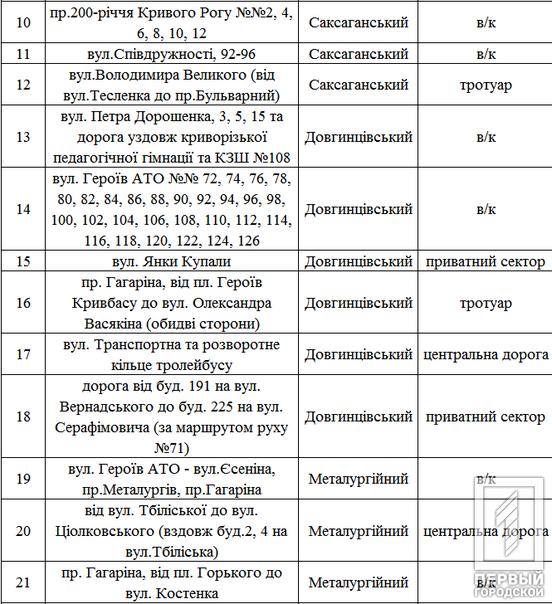 10 марта в городе начались работы по ремонту внутриквартальных дорог, а также автомагистралей и дорог частного сектора. Они проходят в семи районах. В частности, бригады ремонтников уже начали благоустройство улиц Дорошенко, Героев АТО, Божедаровской, объездной дороги в Покровском районе и других. В то же время продолжается масштабная реконструкция проспекта 200-летия Кривого Рога, а также строительство новой дороги, которая соединит микрорайон Солнечный и улицу Спасскую. Перечень объектов, которые планируют отремонтировать, опубликовало в Управление прессы и внутренней политики.