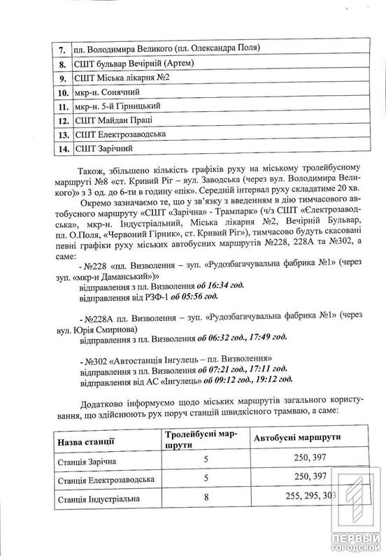 Помимо этого, увеличили количество графиков троллейбусного маршрута №8, соединяющего станцию Кривой Рог и улицу Заводскую, от трёх до шести единиц в час «пик». Интервал движения составит 20 минут.