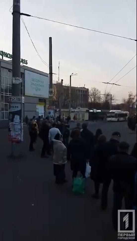 В центре Кривого Рога образовались очереди на остановках общественного транспорта, – фотофакт