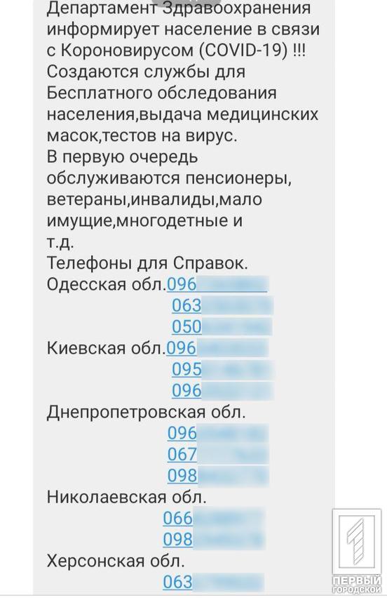 Новый фейк появился в соцсетях. В мессенджерах, преимущественно Viber, рассылают сообщение с номерами телефонов. Якобы, позвонив по ним, можно записаться на бесплатную раздачу медицинских масок и тестирование на коронавирус. Чиновники исполкома Кривого Рога официально опровергли эту информацию.