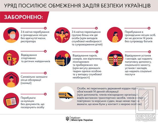 3 апреля премьер Денис Шмыгаль записал видеообращение, в котором рассказал о новых ограничениях, которые вводит правительство на время карантина. Среди них, запрет на передвижение по улице в компании больше двух человек.