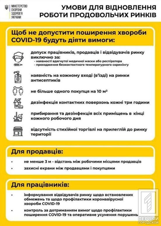Также министр Степанов сообщил, что МОЗ разработало условия, при которых станет возможным открытие и работа рынков. Публикуем их ниже.