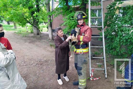 В Кривом Роге дети, пенсионеры и пожарные спасали кота, застрявшего на дереве