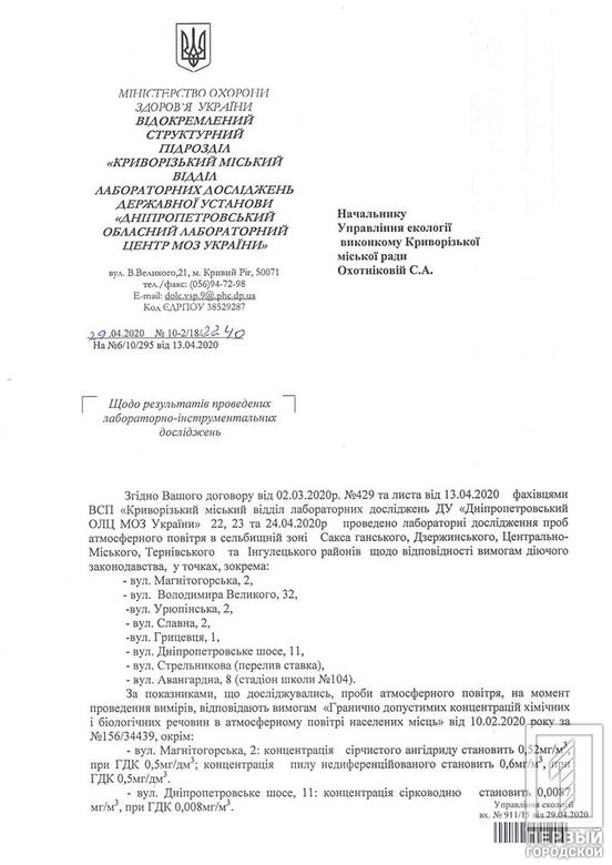 Исследования провели за счёт городского фонда охраны окружающей среды силами Криворожского городского отдела лабораторных исследований Министерства здравоохранения Украины. Такой мониторинг проводится в нашем городе ежемесячно.