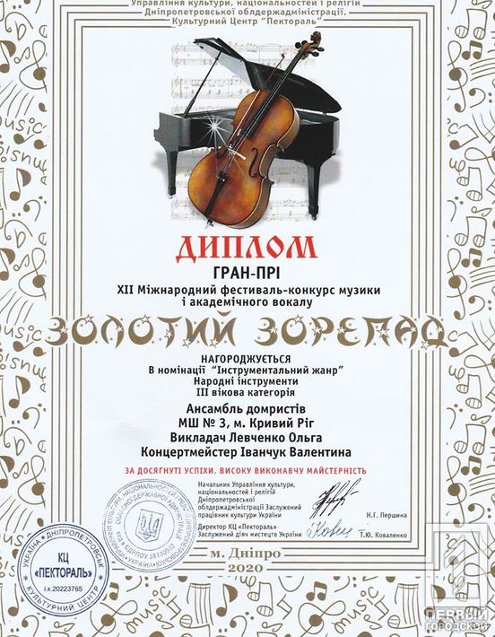 Международный конкурс «Золотой звездопад» проходил в Днепре в режиме онлайн. Криворожские музыканты завоевали на нём наивысшую награду. Об этом сообщили в управлении культуры исполкома Криворожского горсовета.
