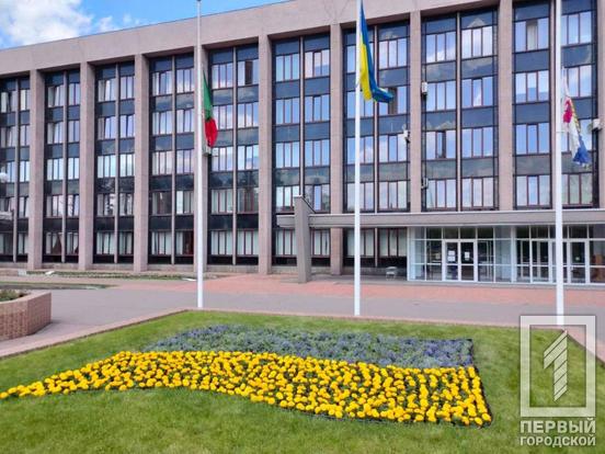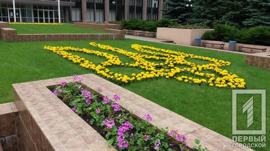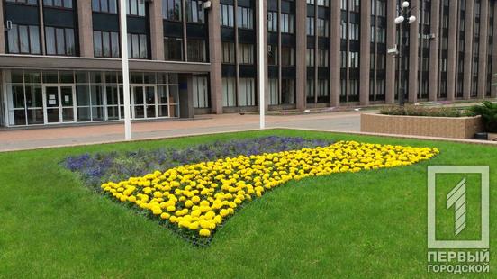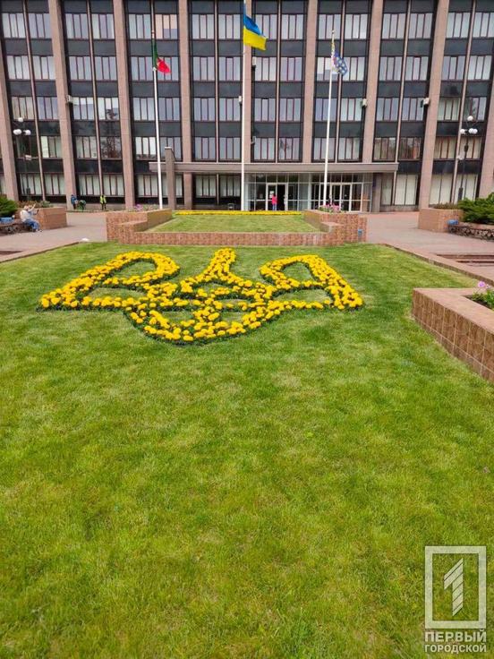 «Каскад» возле горсовета Кривого Рога украсили государственной символикой из цветов