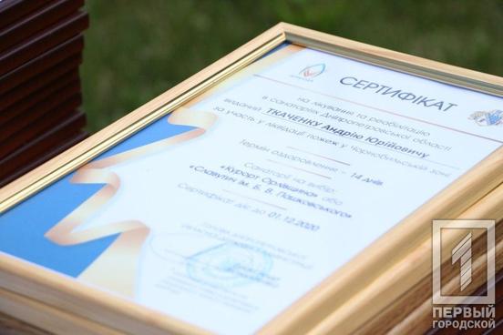 Спасателям вручили памятные знаки, грамоты, сертификаты на оздоровление и другие ценные призы. Среди награждённых огнеборцев также были шестеро криворожан. Их поздравил глава Днепр ОГА Александр Бондаренко, глава облсовета Святослав Олейник, а также начальник ГСЧС области Андрей Кульбач.
