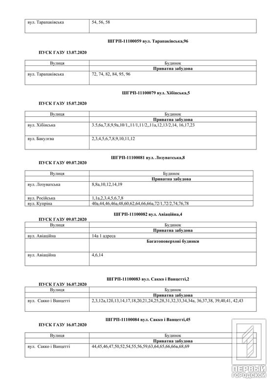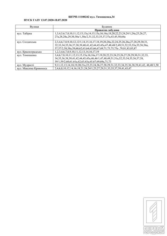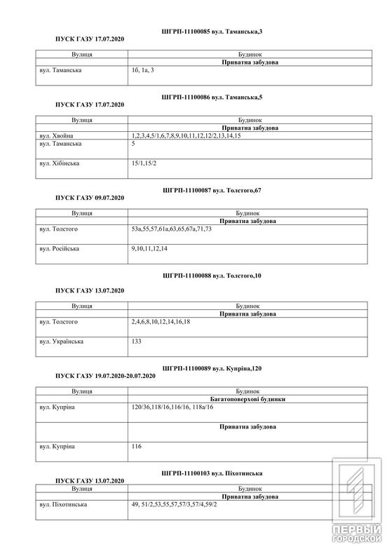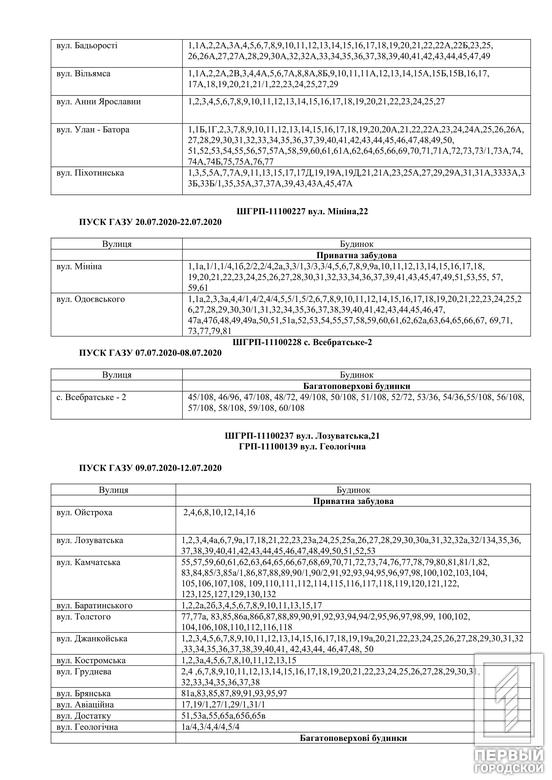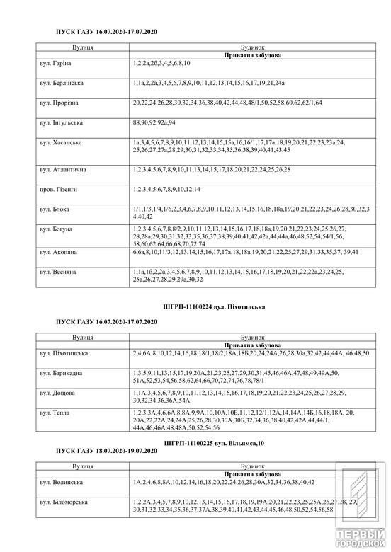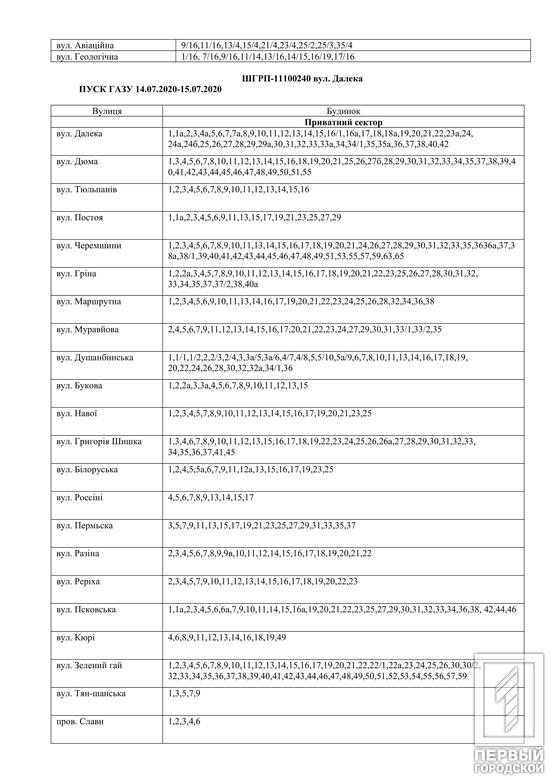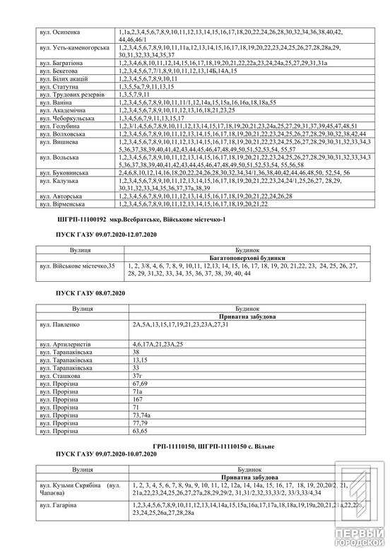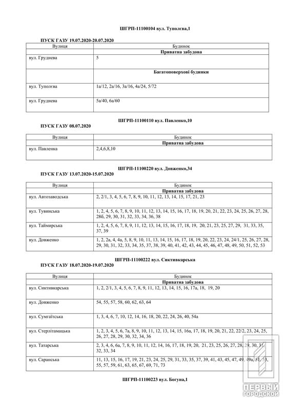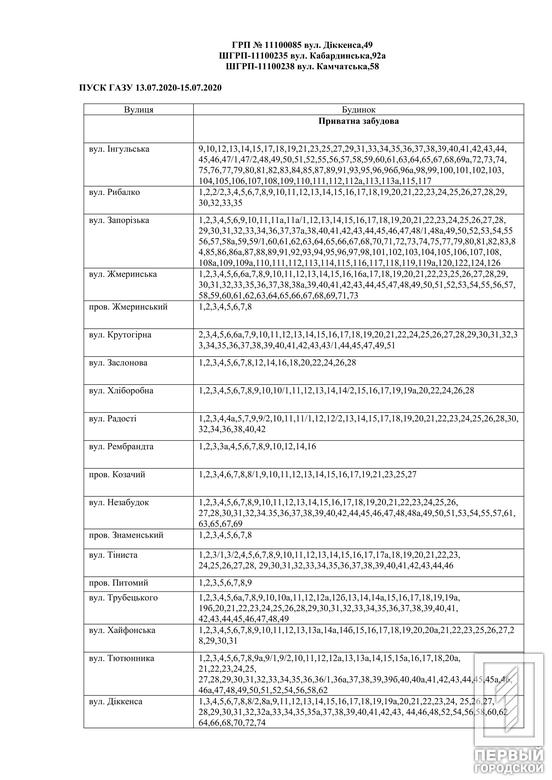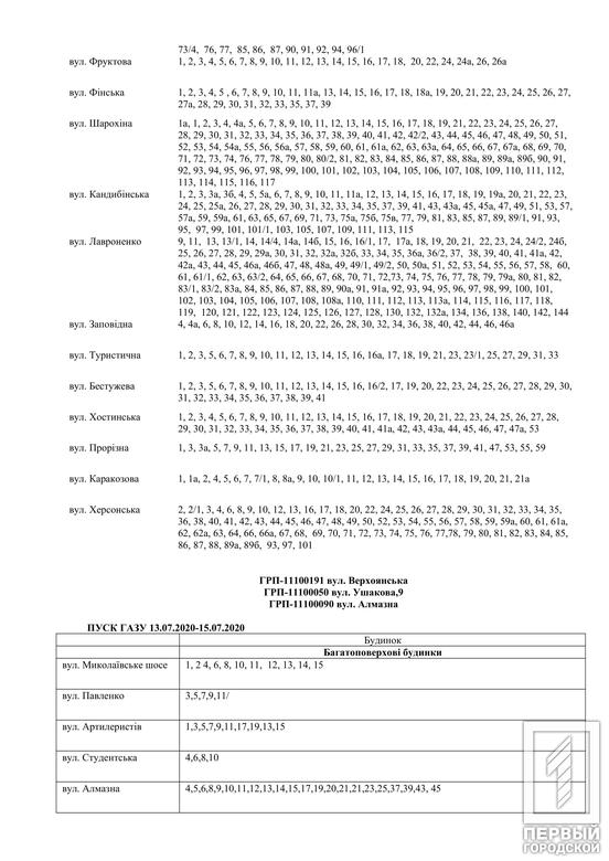 Газ вернётся в дома и квартиры после выполнения ремонтных работ и обеспечения 100% доступа к газовому оборудованию и после успешного пневматического испытания системы. Специалисты должны будут проверить домохозяйства после выполнения ремонта на сетях. В «Криворожгазе» просят перекрыть краны перед газовыми приборами для выполнения его пуска в соответствии с этим графиком: