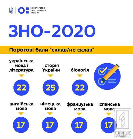 23 июля огласили пороговые баллы «сдал/не сдал» по семи предметам основной сессии ВНО-2020. В перечень вошли тесты по украинскому языку и литературе, истории Украины, иностранным языкам и биологии. Об этом сообщили на сайте Украинского центра оценивания качества образования.