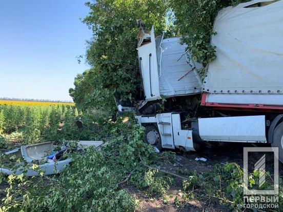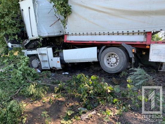 Вечером 5 августа на трассе в Криворожском районе фура с цементом съехала в кювет, где врезалась в дерево. Предварительно, водитель грузовика отделался лёгкими травмами.