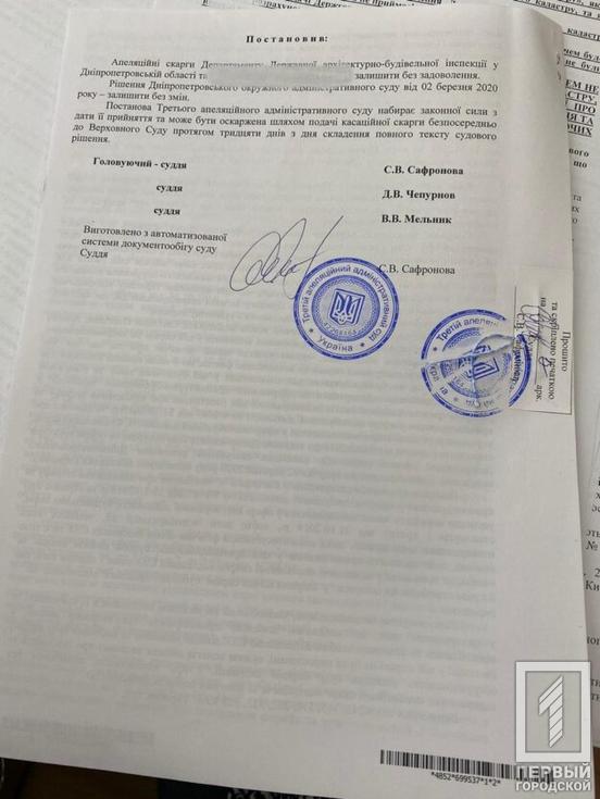 Городской совет Днепра не согласился с таким разворотом событий и обратился в суд. Весной 2020 года окружной административный суд признал незаконным предписание архитектурной инспекции и отменил штраф, который областные чиновники ГАСИ пытались взыскать с мэрии Днепра. А 16 июля этого года суд апелляционной инстанции подтвердил решение окружного админсуда и полную правоту мэрии Днепра.