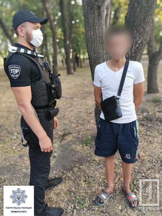 Вечером 2 сентября во время патрулирования Металлургического района инспекторы заметили парня, который при виде их авто попытался скрыться. У него в сумке обнаружили пять слип-пакетов с «травкой». Об этом сообщили в пресс-службе патрульной полиции Кривого Рога.