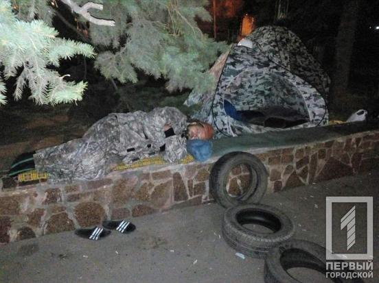 В Кривом Роге шахтёры КЖРК в поддержку бастующих коллег разбили палаточный городок под шахтоуправлением и провели там ночь