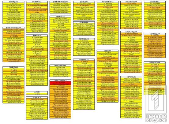 На внеочередном заседании комиссии по вопросам техногенно-экологической безопасности и чрезвычайных ситуаций, которое состоялось 24 сентября, утвердили новое распределение карантинных зон. Согласно нему в «жёлтую зону» попали два города Днепропетровской области – Днепр и Кривой Рог, а также четыре района – Верхнеднепровский, Днепровский, Пятихатский и Царичанский. Новое распределение вступит в силу с понедельника, 28 сентября.