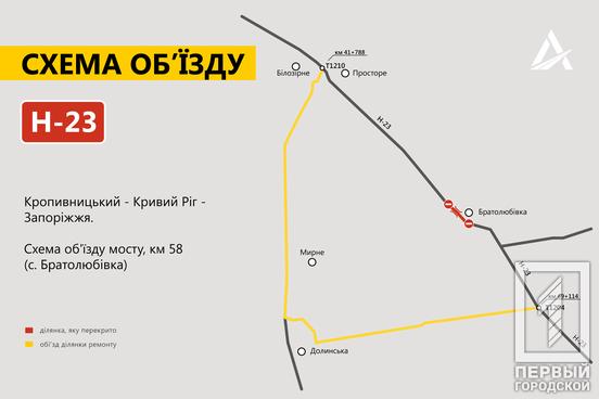 Часть трассы Кропивницкий – Кривой Рог перекрыли из-за ремонта моста