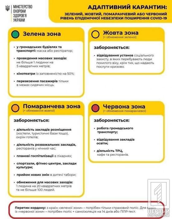 С понедельника «оранжевая» карантинная зона будет включать Днепр, Вольногорск, Каменское, Жёлтые Воды, Кривой Рог, Марганец, Никополь, Новомосковск, Павлоград, Первомайск, Покров, Синельниково и Терновку. Также сюда войдут Апостоловский, Васильковский, Верхнеднепровский, Днепровский, Криворожский, Криничанский, Новомосковский, Межевской, Никопольский, Новомосковский, Павлоградский, Петриковский, Петропавловский, Покровский, Пятихатский, Синельниковский, Солонянский, Софиевский, Солонянский, Царичанский, Широковский и Юрьевский районы Днепропетровской области.