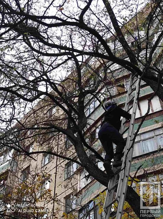 9 ноября в Центрально-Городском районе криворожане заметили на дереве кота. Они вызвали специалистов, которые помогли животному спуститься на землю. Об этом сообщила специалист по работе со СМИ 3-го Государственного пожарно-спасательного отряда.