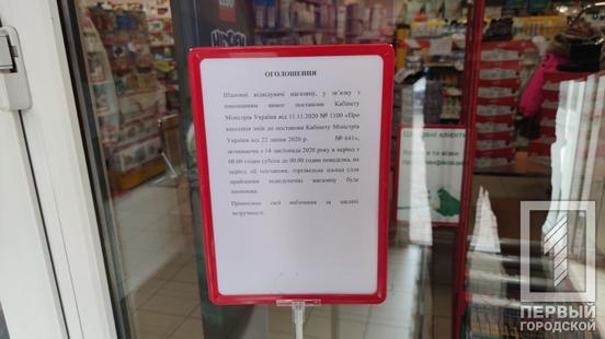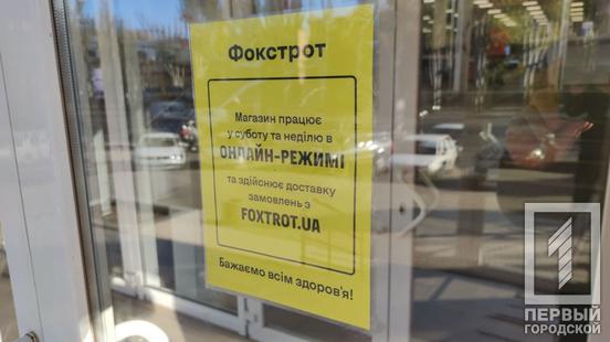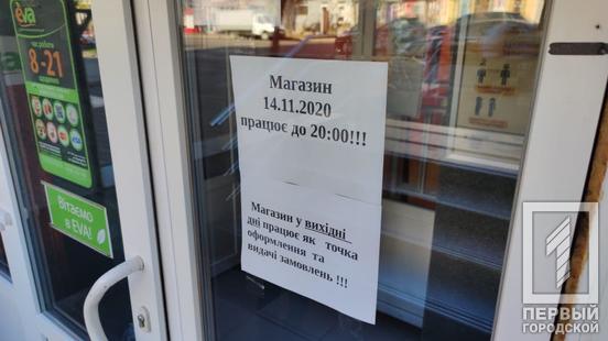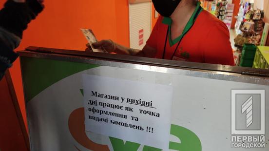 Чтобы узнать, как работают торговые заведения Кривого Рога в новых условиях, журналисты отправились на 95-й квартал и Соцгород. В Плазу, расположенную между проспектами Гагарина и Металлургов, двери открыты, чего не скажешь о большинстве магазинов, находящихся в ней. Закрылось всё, кроме отделения службы доставки и супермаркета, работа которого не попадает под запрет.