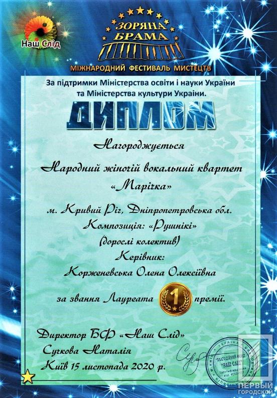 Народный женский вокальный квартет «Марічка» принял участие в чешском международном фестивале и получил диплом ІІ степени. Об этом сообщила пресс-служба дворца культуры «Северный».