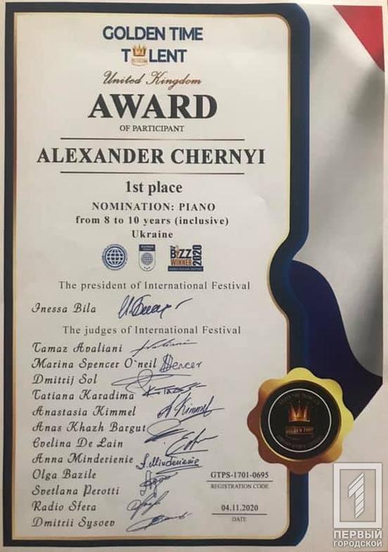 Юный пианист поучаствовал в известном международном конкурсе Golden Time Talent и одержал победу. Об этом сообщает на своей странице Криворожская музыкальная школа № 10.
