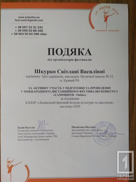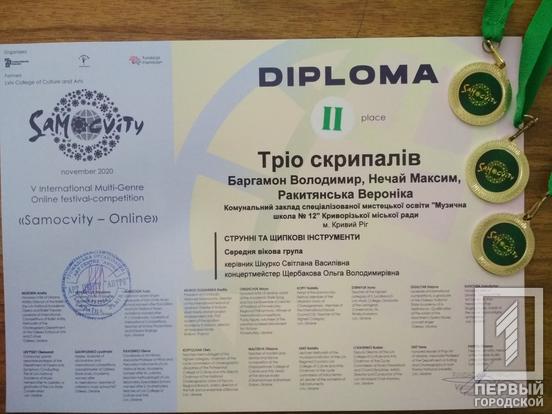 Трио скрипачей из Кривого Рога отличилось на международном фестивале-конкурсе Samocvity-Online