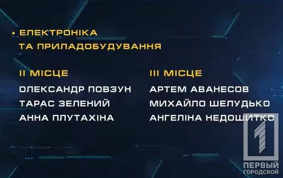Анастасия Ючинская, ученица 10-Б класса Криворожского Центрально-Городского лицея, стала единственной представительницей Днепропетровщины в номинации «Материаловедение и перспективные технологии». Она презентовала свои исследования эффективности ингибиторов коррозии, созданных на основе растительного сырья, и заняла второе место конкурса. А одиннадцатиклассник Артём Аванесов представлял область в номинации «Электроника и приборостроение» с работой «Разработка устройства для регенерации тепла сточных вод» и стал бронзовым призёром выставки-конкурса.