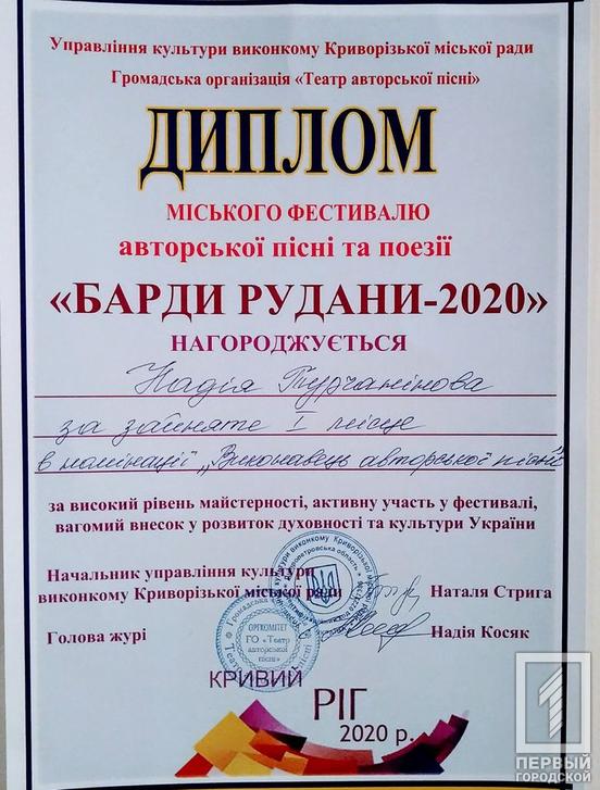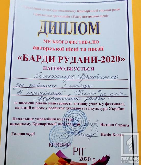 Городской фестиваль «Барды Руданы» проходил с 1 по 19 декабря. В этом году конкурс состоялся в онлайн-режиме из-за эпидемии коронавируса. Александр Кравченко – автор песен впервые принял участие в городском фестивале с вокалистами-исполнителями, которые заняли призовые места.