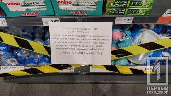 В супермаркетах бакалеи с непродовольственными товарами оклеены лентой и предупреждающими надписями. В одних магазинах предлагается сделать покупку онлайн или на кассе адресной доставки. В другом супермаркете продажа таких товаров вовсе запрещена до 24 января. Продовольственные магазины работают в привычном режиме с соблюдением карантинных мер.